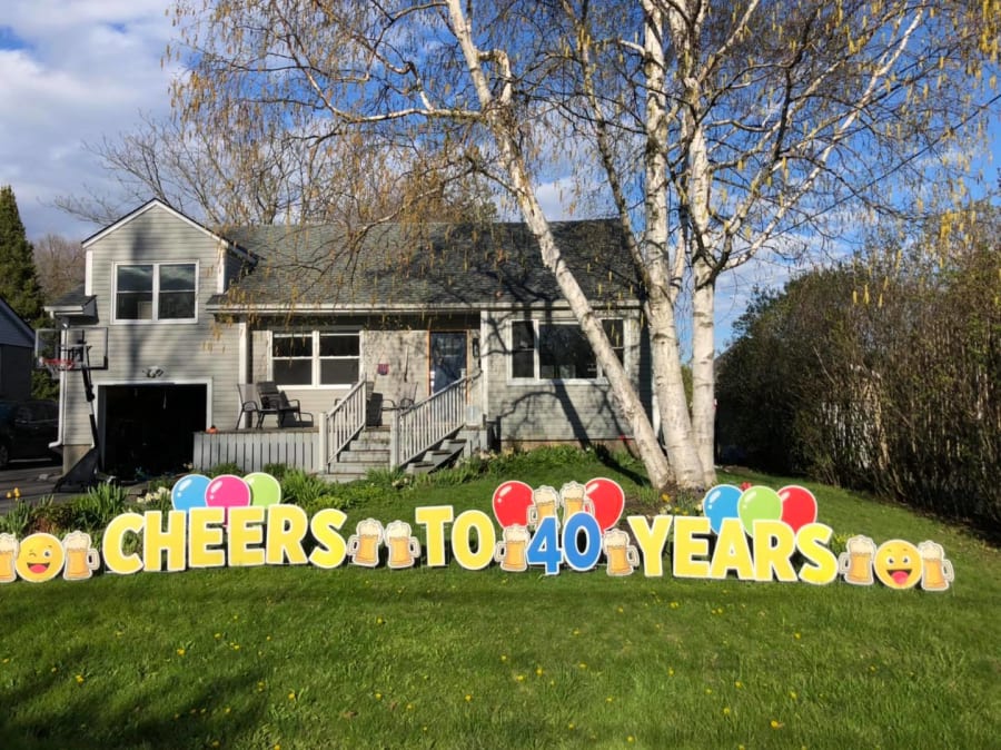 CHEERS TO YEARS - Includes Age, Balloons, Beer Mug Emojis, Smiley Emojis Add a name or word $25 Setup EVENING PRIOR between 4-9pm (unless otherwise arranged) Pickup Date Booked after 6pm