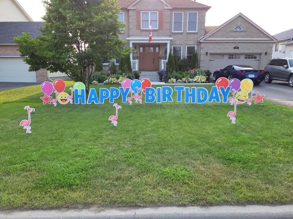 Flamingo THEME -HAPPY BIRTHDAY - Includes Age, Balloons, Flamingos, Smiley Emojis