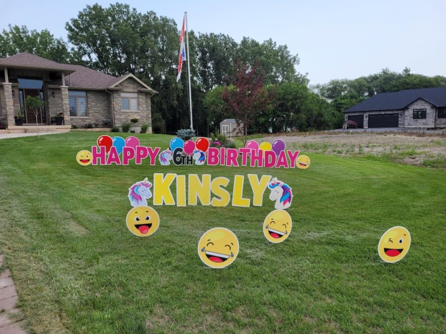 UNICORN THEME -HAPPY BIRTHDAY - Includes Name, Age, Balloons, Unicorn Theme, Smiley Emojis Setup EVENING PRIOR between 4-9pm (unless otherwise arranged) Pickup Date Booked after 6pm