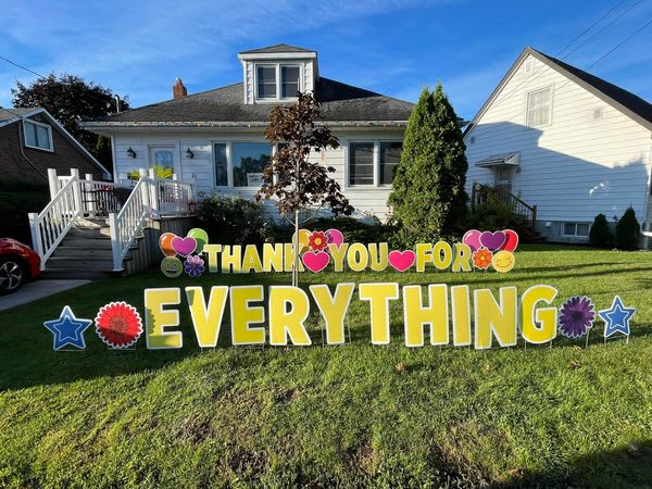 CARD YOUR YARD specializes in surprising people. Fun signs with great themes that add a personal touch. Contact Card Your Yard with any questions. Call us today at: 613-876-6724 or 613-885-9790 THANK YOU (FOR EVERYTHING) or a name is an additional $25 - includes stars, smiley emojis (other theme cards available on request)